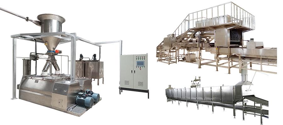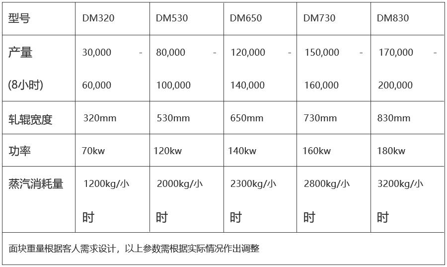 面粉風送系統——鹽水系統——和面機——復合壓片機——連續壓片機——蒸面機——切斷(分排)落盒機——烘干機——分排輸送機——檢查輸送機——包裝